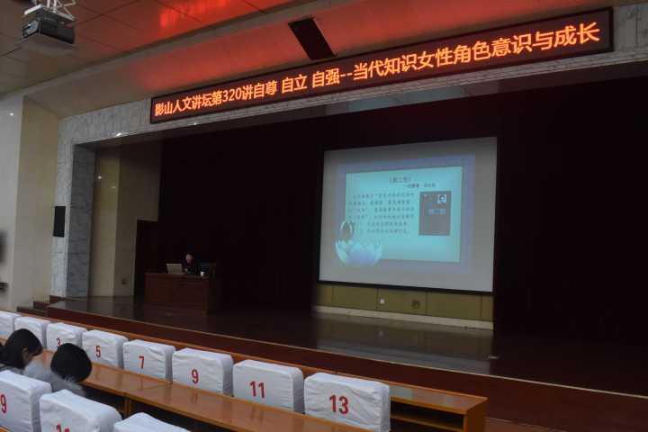 2017年12月27日晚七点,影山人文讲坛第320讲在报告厅顺利举行,此次我校有幸邀请到了张爱波教授为同学们带来了一场以“女性应自尊、自立、自强”为主题的精彩演讲。