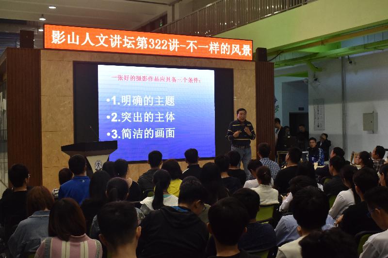 2018年3月28日,我校有幸邀请到王亮朝教授做客影山人文讲坛,为同学们带来了一场以“不一样的风景”为主题的探索性质的摄影理论演讲。