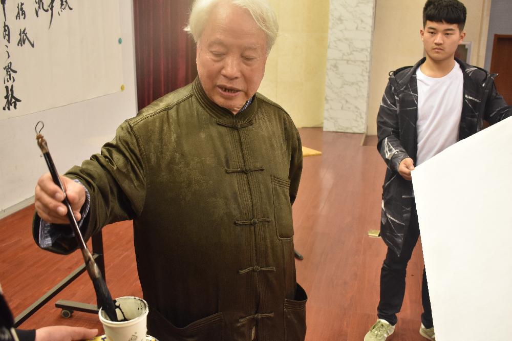 朱教授深刻指出,书法是优秀传统文化的根,中国书法归根结底就是“法”,随后,现场讲解演示了书法书写的技巧,提出了“五字执笔法――掖押抅搁抵”,与同学们共同探讨、研究书法,通过积极的交流协作,使同学们对书画文化产生了浓厚的兴趣。