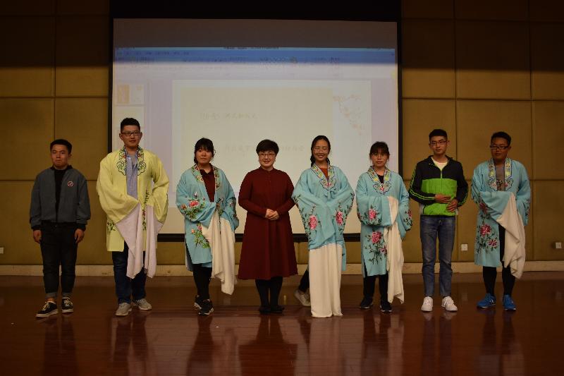 讲座的最后,段教授邀请台上的七位同学一起演唱了经典的京剧曲目《梨花颂》,赢得了同学们的阵阵掌声。