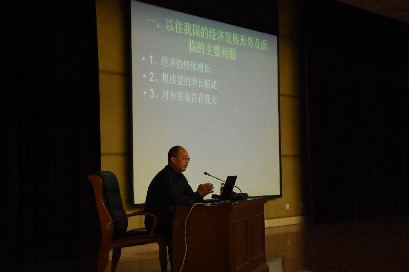 武教授首先向同学们介绍了中国过去经济发展的不平衡,对新时代社会的主要矛盾进行梳理,详细阐述人民日益增长的物质文化的需要与不平衡、不充分的发展之间的关系,提出应解决好发展问题,提升发展质量和效益,才能推动经济社会全面进步。