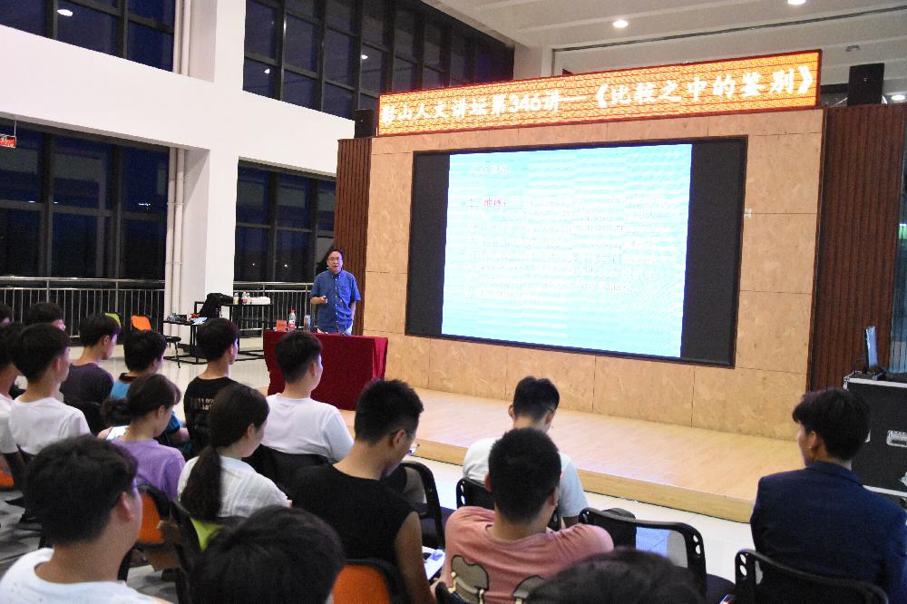 6月5日晚,影山人文讲坛第346讲在工程中心路演大厅顺利举行,此次讲座有幸邀请到了山东大学历史系徐畅教授,开展了以《比较之中的鉴别》为专题的教育演讲,数余名学生代表参加了讲座。徐畅教授通过一些文献及口述向同学们介绍了抗战时期的中国,对于同学们了解中国历史有着非凡的意义。